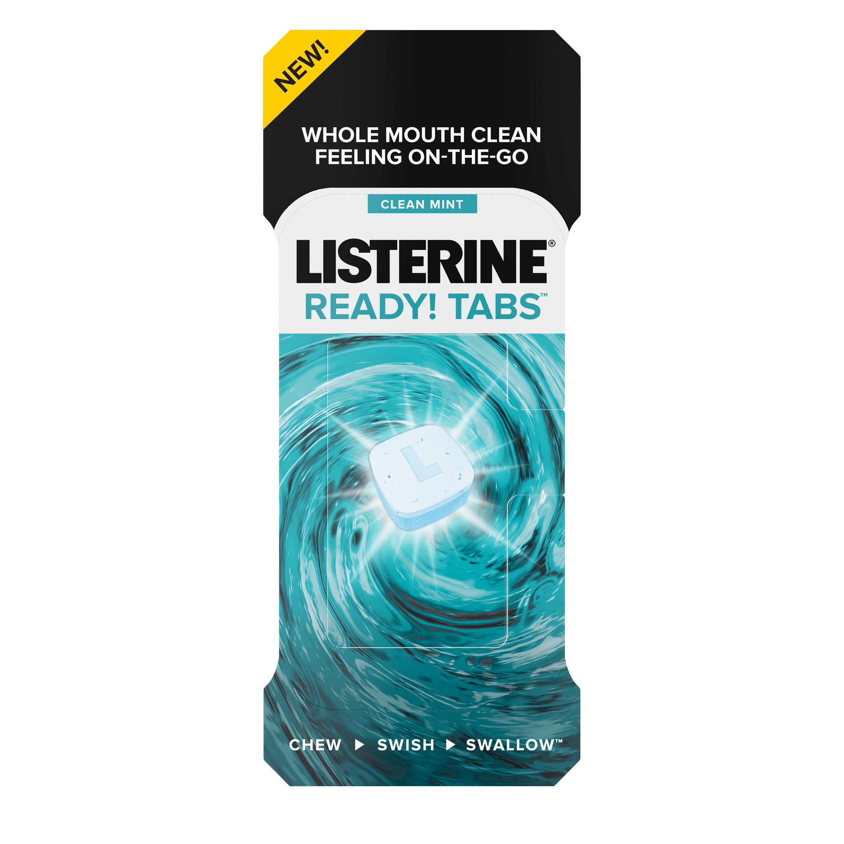 LISTERINE (Deep breath.) Technically its a rectangular-shape bilayer-compressed tablet TM, that once chewe creates just enough liquid for you to swish around your mouth to get a whole-mouth clean. Tabs start out as a soli chewable tablet before turning into a mouthful of liquid. Unleash the clean feeling of Listerine on the go with Listerine Ready. Oct 1 20Experience a new way to get fresh breath without gum, mints or candies. Tabs Chewable Tablets with Clean Mint Flavor, Revolutionary 4-Hour Fresh Breath Tablets to Help Fight Bad Breath On-the-Go, Sugar-Free, Alcohol.