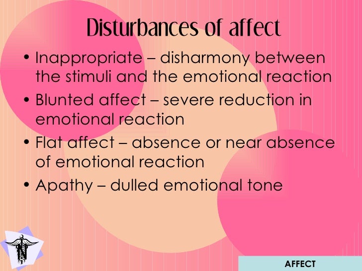 It is characterized by an individuals inability to express his feelings either verbally or non-verbally, especially when related to issues that would normally illicit the response. This may also affect sexual functioning as it hampers interpersonal relationships and may lead to a. Blunted affect is a step above flat, with some mild expression present on occasion. Blunted affect refers to a reduction in the intensity of an individualaposs emotional response. This symptom cluster, often associated with functional impairment, includes the observable symptoms of blunted affect and alogia.