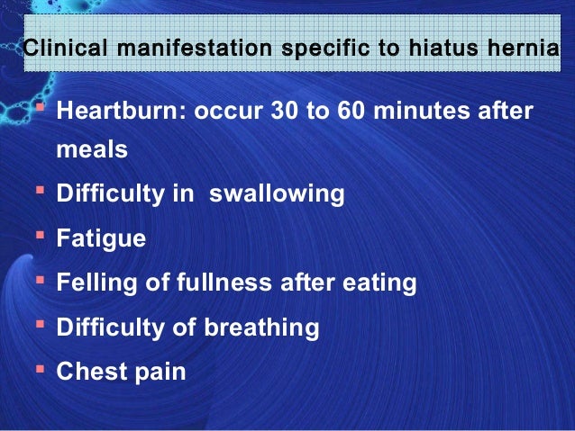 Hiatal Hernia Symptoms: Heartburn, Difficulty Swallowing