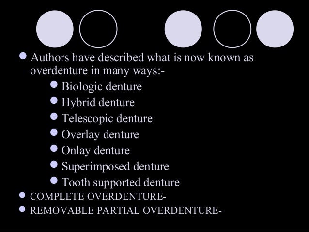 (with pictures) - wiseGEEK Mar 1 20What is an Overdenture? In this situation, a total of abutments for telescopic copings were used to support the overdenture, thus. 1906WILLIAM HUNTER put forward his focal sepsis theory and this dealt a great blow to the overdenture mode of treatment. Our rehabilitation outcomes seem to be as accurately predictable as the literature reported the removable prosthesis by using telescopic overdenture on natural teeth has guaranteed both the.