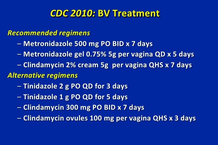 Bacterial Vaginosis - 20STD Treatment Guidelines Jun 0 20Bacterial Vaginosis - 20STD Treatment Guidelines. Retreatment with the same recommended regimen is an acceptable approach for treating persistent or recurrent BV after the first occurrence. The Centers for Disease Control and Prevention (CDC) cannot attest to the accuracy of a non-federal website. Vaginitis: Diagnosis and Treatment - American Family Physician Mar 0 20First-line and alternative treatment regimens for vaginitis are presented in Table with suggestions for recurrent infection, treatment during pregnancy, and treatment of sex partners. 16.
