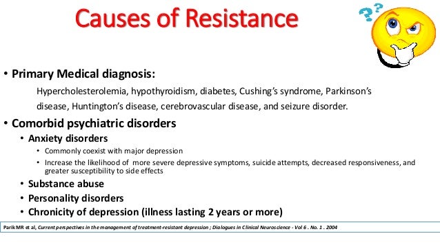 In this article, we discuss patients exhibiting new-onset agitation, panic attacks, and treatment-resistant depression, all of which may be attributed to Bartonella. ANSWER Many things can make your depression hard to treat: Quitting antidepressants before they have time to work. Deep brain stimulation for treatment-resistant depression: systematic review of clinical outcomes. Sep 1 20Case reports usually do not focus on psychiatric symptoms and typically only as incidental comorbid findings. If you have been treated for depression but your symptoms have not improve you should talk to your doctor.